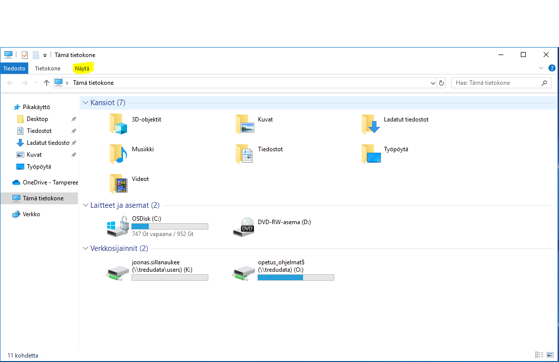 - Avaa resurssienhalllinta näppäinkomennolla Win+E.