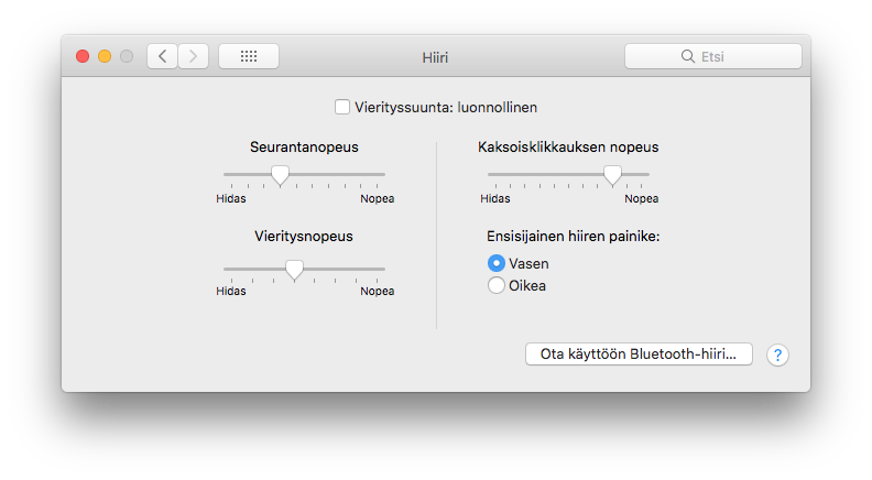 Hiiren vieritysrullan suunnan muuttaminen