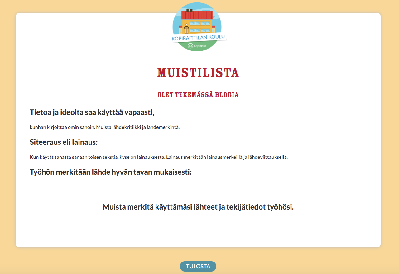 Tässä muistilistassa kerrotaan kuinka tehdään oma blogi.