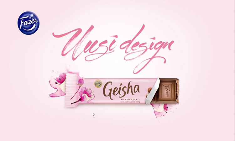 Mainos edustaa Geishan suklaapatukoita ja tämäkin kuva on selkeä. Tunnistan mainoksen Fazerin logosta ja muutenkin kuva näyttää mainosmaiselta.